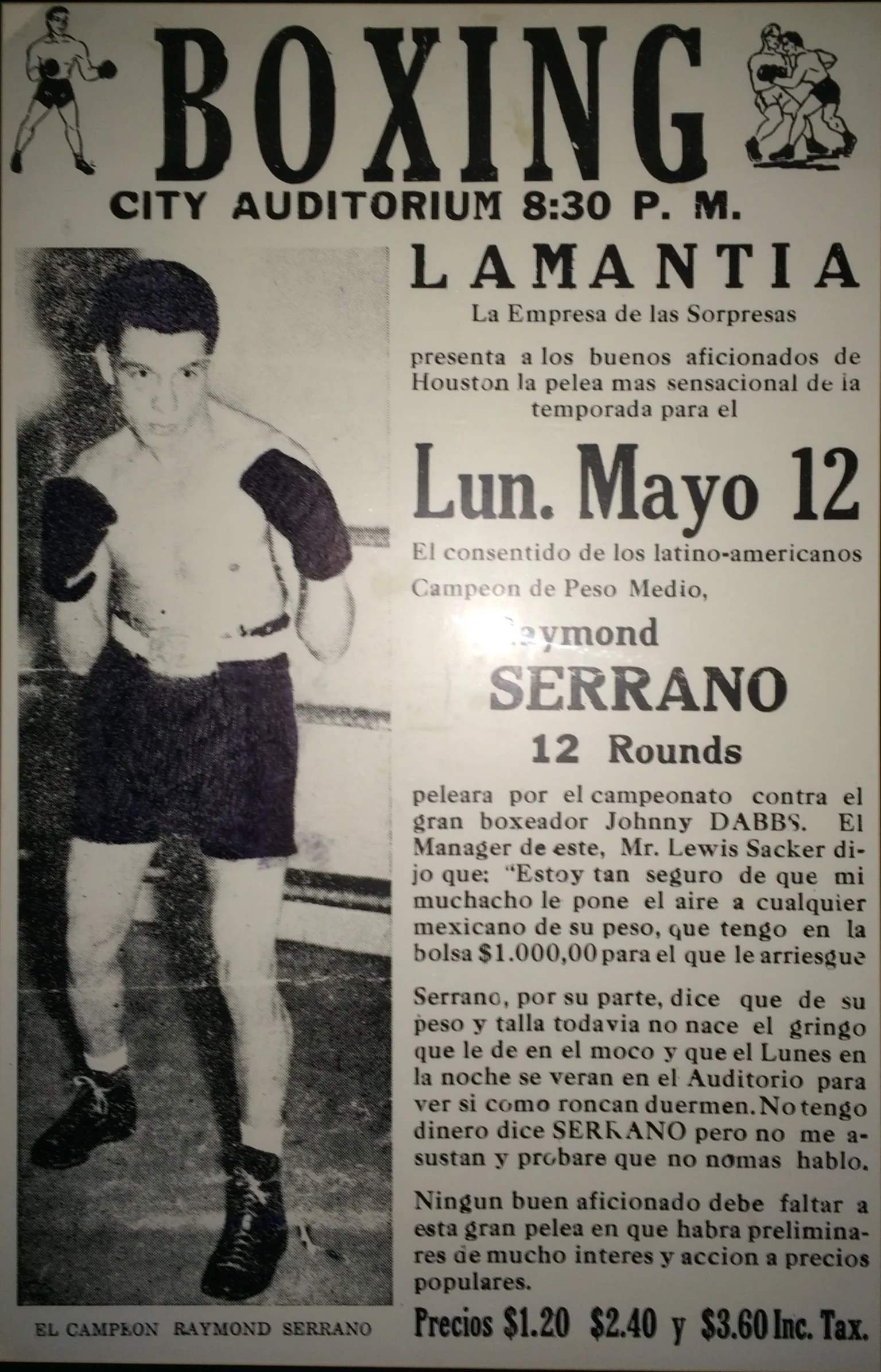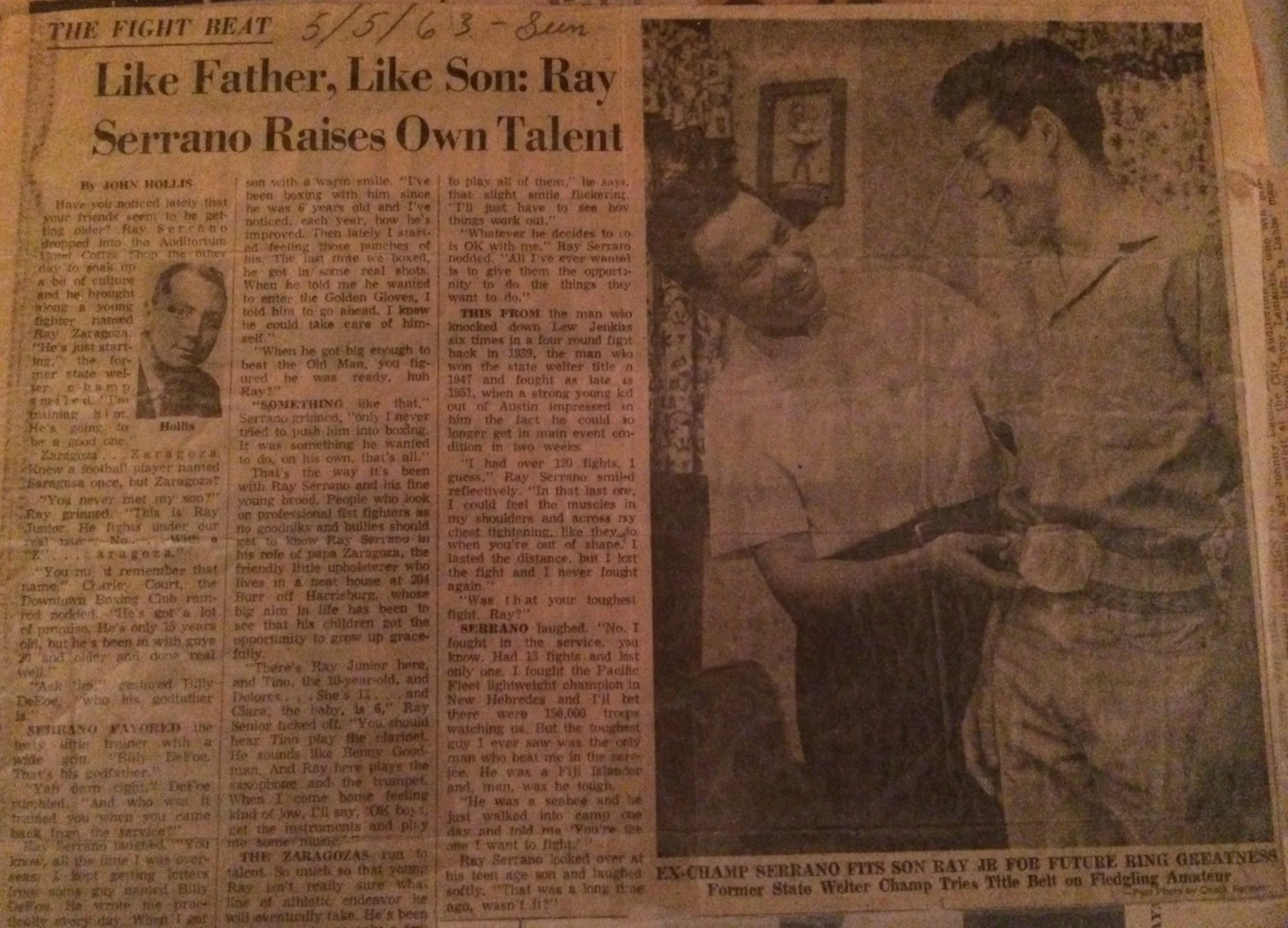 My grandfather was born in the old 6th ward of Houston during the depression, and had to turn to boxing to help support his family. It was apparent after winning his first and only amateur fight before turning pro that he was something special. My grandfather fought against some of the world’s best boxers with a career record of 156-8 .